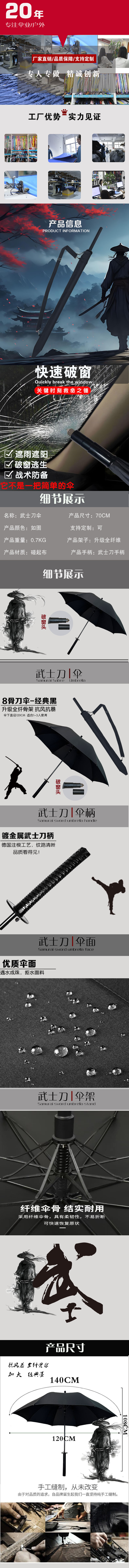 破窗自救優先 武士造型長柄傘 27寸 抗風防暴雨應急高爾夫傘